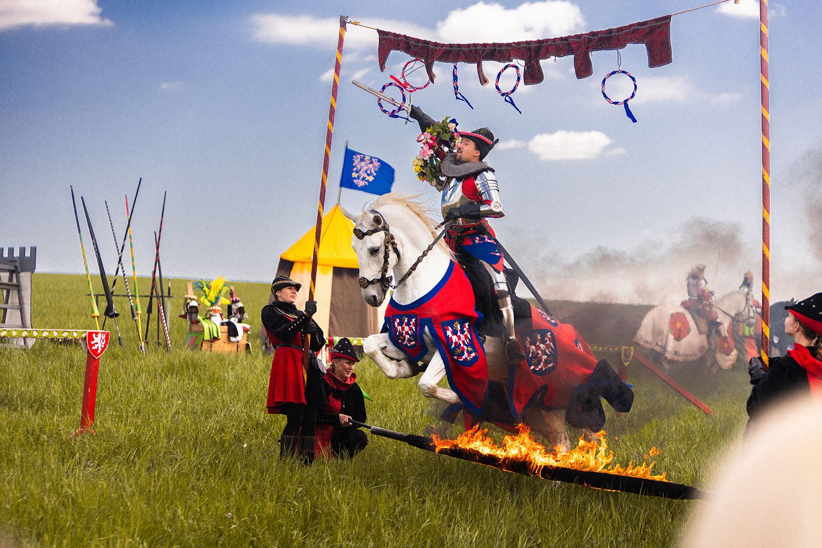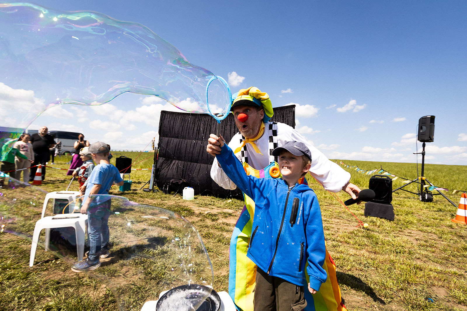 On the main stage, performers performed oriental dances, and snake acts, a fakir bed and dog acrobatics were also interesting. The event was hosted by the media-famous and likeable Czech presenter Petr Kumpfe, who switched between Czech and German with great skill. This was followed by a great soap bubble show and a bird of prey demonstration. Opposite the stage you could see knights on horses, and nearby there was a craft market with demonstrations of everyday activities of our ancestors. The whole time, the magician Aladdin entertained the visitors with his magic and stilt walkers in stylish costumes watched from above. For all those with a sweet tooth, free candy floss and popcorn were available. Anyone who wanted could get face painting or a tattoo. The children were able to have fun on the bouncy castle, ride horses, see a real fire engine and watch a demonstration by the emergency services. Everyone also had the chance to win a prize on the wheel of fortune.
